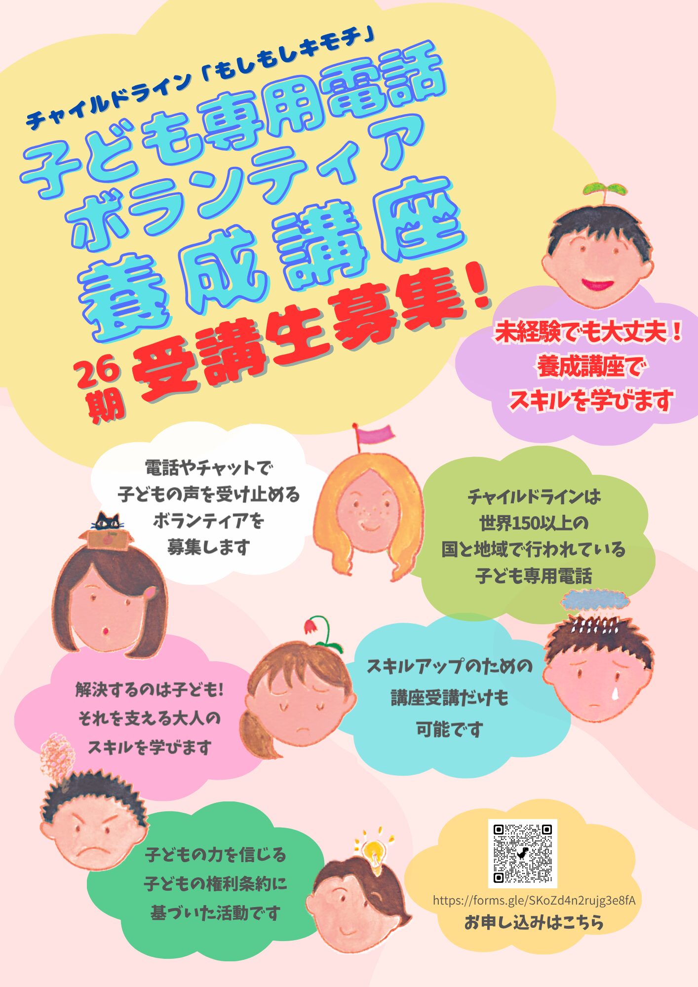 こんにちは。 チャイルドライン「もしもしキモチ」事務局です。 チャイルドラインで子どもたちからの電話を受ける キャッチャーボランティア(電話の受け手)を 募集するにあたり、今年も養成講座を開講します。 チラ […]